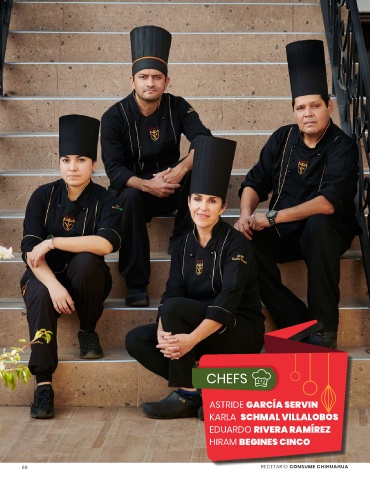 CHEFS ASTRIDE GARCÍA SERVIN KARLA SCHMAL VILLALOBOS EDUARDO RIVERA RAMÍREZ HIRAM BEGINES CINCO 68 RECETARIO CONSUME CHIHUAHUA